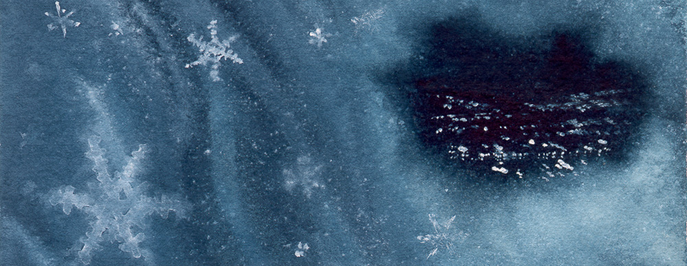 This was really just an exercise of sorts. Because the copyright/dedication spreads are usually just "mood music" there wasn't any part of the narrative intended for this spread. Ultimately, I just messed around with a winter storm/night sky kind of feeling until it felt right. Why a winter storm? I wanted to foreshadow the storm to come.