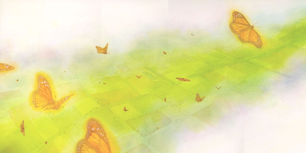 butterflies are following John on a long journey to a new