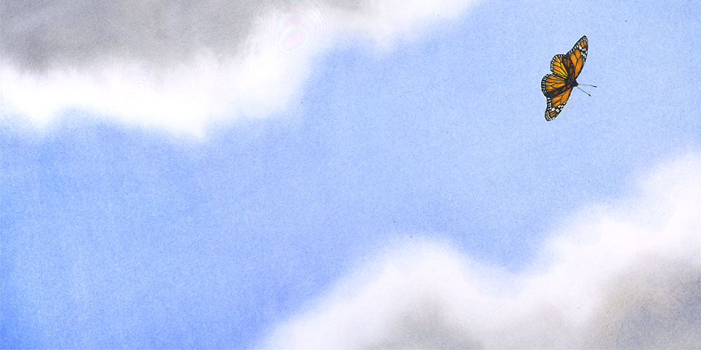 to have a bunch of butterflies, small, barely visible, with only one of