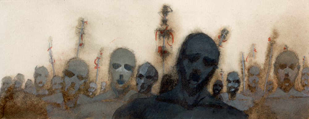 I really liked this spread through the entire process. Even though it is too crude to use as a finish, I love the primitive, tactile, qualities of the color comp. It wouldn't have been consistent with the rest of the book, so this finish had to be more developed, but it's nice to be able to show it to people here.